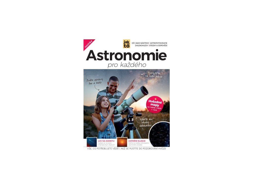Vše co potřebujete vědět, než se pustíte do pozorování hvězd K pozorování noční oblohy nepotřebujete sbírku akademických titulů, encyklopedické znalosti a vlastně ani drahý dalekohled. Celou řadu pozoruhodných jevů zaznamenáte nevyzbrojeným okem, což přispívá k neodolatelnému půvabu amatérské astronomie. Stačí poznat základní orientační body a naskytne se vám úchvatný pohled na planety, souhvězdí, mlhoviny, meteorické roje a další nevšední vesmírné úkazy. Pokud neodoláte a investujete do astronomického dalekohledu, svět nad vaší hlavou se promění ve velkolepou galerii, plnou barev a scenérií, nad kterými se tají dech. Náš přehledný průvodce vás krok za krokem vybaví veškerými potřebnými informacemi od výběru vhodného vybavení, přes mapy hvězdné oblohy po praktický návod, kdy, kde a především jak sledovat nejkrásnější astronomické úkazy. Otočte stránku a vydejte se na vzrušující cestu za tajemstvím vesmíru! Pozorování oblohy Osvojte si znalosti nezbytné pro zkoumání nebeských jevů Hvězdářské dalekohledy Zjistěte, jaký přístroj se stane vaším spolehlivým pomocníkem Hvězdné mapy Poznejte nejkrásnější astronomické jevy v každém ročním období Astrofotografie Získejte rady a tipy, jak pořídit fantastické snímky hvězdného nebeDodatočné parametre