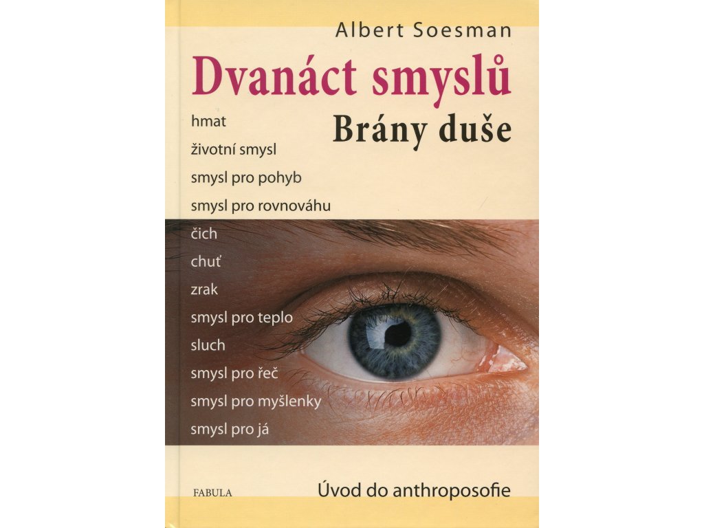 Tato kniha nizozemského lékaře Alberta Soesmana přináší zásadní a zároveň nesmírně živé rozpracování nauky Rudolfa Steinera o dvanácti smyslech. Jako je dvanáct znamení zvěrokruhu, má člověk také dvanáctero smyslů. Vedle čtyř fyzických smyslů (hmat, životní smysl, smysl pro pohyb a smysl pro rovnováhu) jsou to čtyři smysly duševní (čich, chuť, zrak a smysl pro teplo) a čtyři smysly duchovní nebo také sociální (sluch, smysl pro řeč, resp. slovo, smysl pro myšlenky a smysl pro lidské já). Poznání této dvanácternosti lidských smyslů i jejich vzájemných polarit a souvislostí dává zejména pedagogům do rukou velmi důležitý nástroj pro jejich práci s dětmi. Zároveň umožňuje poznat celistvou bytost člověka jako tělo, duši a ducha a jeho vztah ke světu.Dodatočné parametre