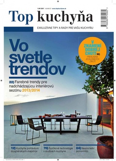 Tohtoročné vydanie TOP KUCHYŇA je zamerané predovšetkým na vzhľad a dizajn kuchyne. Publikácia prináša množstvo dizajnových noviniek prezentovaných na najvýznamnejších nábytkových výstavách tohto roka. Dokumentuje rôzne koncepty od ultramoderných high-tech kuchýň až po retro dizajn, vykresľujúc súčasné moderné európske trendy. Samozrejme nevynecháva ani dizajnové doplnky do kuchyne a farebné trendy obdobia 2013 – 2014.
