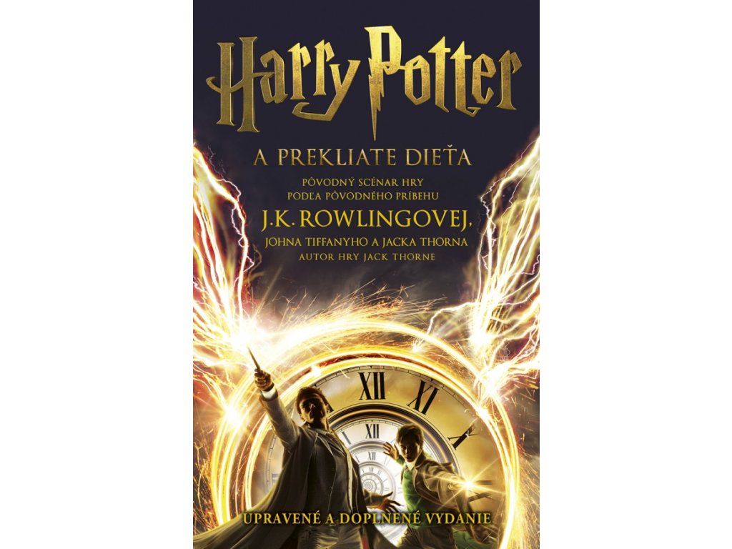 Kompletný a neskrátený scenár úspešnej inscenácie uvádzanej vo West Ende Harry Potter a prekliate dieťa napísali J.K. Rowlingová, John Tiffany a Jack Thorne, pričom vychádzali z pôvodného príbehu. Toto vydanie obsahuje záverečný dialóg a scénické pokyny k pôvodnej dvojdielnej hre, rozhovor režiséra Johna Tiffanyho s dramatikom Jackom Thornom, rodokmeň Potterovcov a časovú os kľúčových udalostí, ktoré sa odohrali v čarodejníckom svete a viedli k Harrymu Potterovi a prekliatemu dieťaťu.