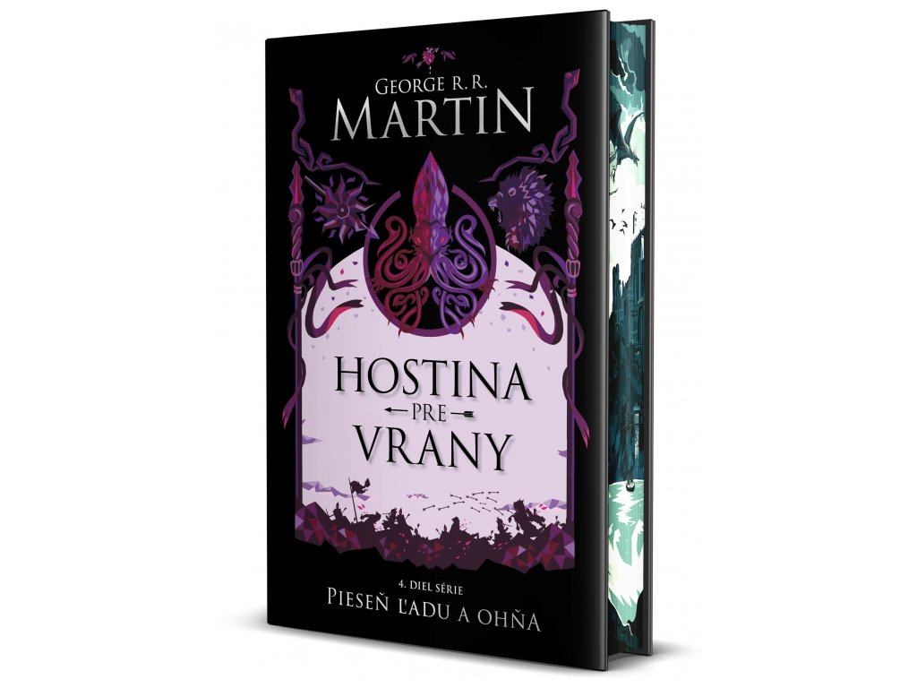 V Západnej zemi sa schádzajú ľudské Vrany na hostinu z popola, spriadajú sa intrigy a uzatvárajú nové spojenectvá, objavujú sa prekvapivé tváre – niektoré už známe, iné úplne nové –, vynárajú sa zo súmraku ukončených bojov a chaosu, aby prijali nastávajúce výzvy.