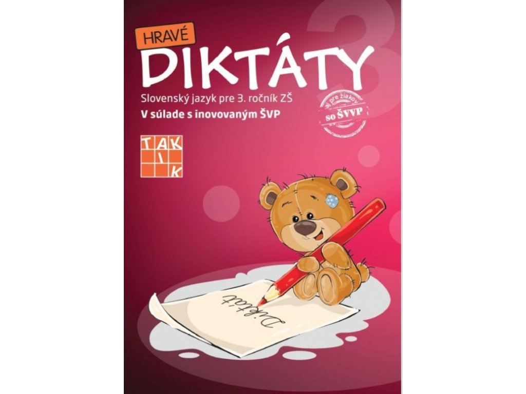 Publikácia Hravé diktáty 3 je zameraná na precvičovanie správneho písania a upevňovanie vedomostí zo slovenskej gramatiky na prvom stupni základnej školy. V nácvičných a kontrolných diktátoch sú obsiahnuté všetky gramatické javy, ktoré má žiak v treťom ročníku ovládať - slová s l, ĺ, r, ŕ, vybrané slová, slovné druhy (podstatné a prídavné mená, zámená). Súčasťou publikácie sú aj diktáty zamerané na opakovanie učiva. Druhá časť pozostáva z diktátov pre žiakov so špecifickými poruchami písania a pravopisu, ktorí majú nedostatočne rozvinutú alebo narušenú schopnosť vytvárať stereotypy písacích pohybov v spojení s obrazovými a zvukovými predstavami písmen a písacích celkov, a nedostatočnú schopnosť pamätať si a na podnet vybavovať písané štruktúry. Publikácia zohľadňuje predpísané požiadavky Štátneho vzdelávacieho programu na zameranie, rozsah a náročnosť diktátov.Dodatočné parametre