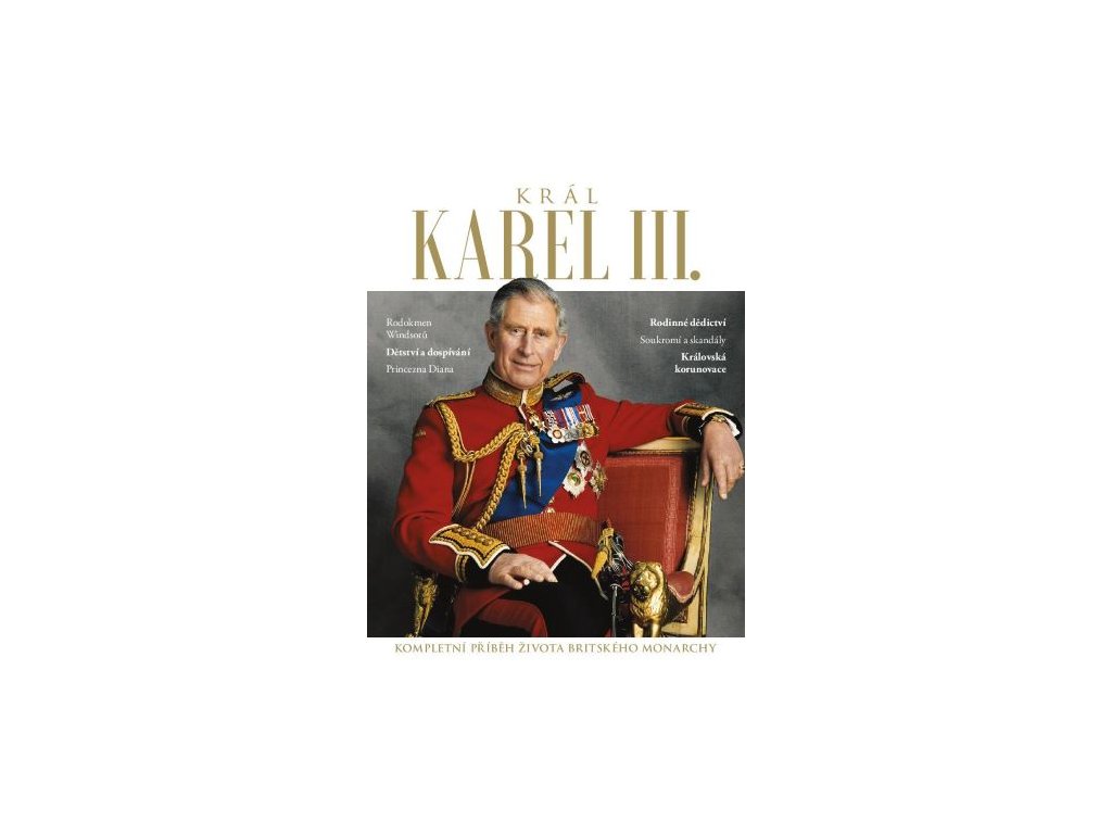 Kompletní příběh života britského monarchy. Poznejte příběh muže, který se stal králem, od kolébky po korunovaci! Karel III. se narodil nejdéle vládnoucí britské panovnici Alžbětě II., prožil mnoho nelehkých let, bez možnosti uniknout zraku veřejnosti a zájmu médií. Jednalo se nejen o nelehké dospívání, ale především bouřlivé manželství s Dianou, princeznou z Walesu, nebo řešení řady problémů spojených s výchovou dvou synů. Vedle toho se ale také mohl těšit z úspěchů, mezi něž patří vztah s Camillou, vyzývání k účinnějšímu boji proti klimatickým změnám či trvalé pouto s veřejností, která ho nyní nazývá svým králem. Vydejte se na jeho cestu od citlivého chlapce ke svědomitému modernímu monarchovi. Překlad anglického originálu. Rodokmen Windsorů Dětsví a dospívání Princezna Diana Rodinné dědictví Soukromí a skandály Královská korunovace Windsorové na britském trůnu Příběh muže, který se stal králem: Od roku 1917 měla dynastie na trůnu pět svých členů. Její budoucnost je zajištěna. Princ a princezna z Walesu Náhodné setkání v zimě roku 1977 vyústilo v pohádkovou svatbu, ale nešťastné manželství dlouho nevydrželo. Synové William a Harry Po Dianině tragické smrti zůstala výchova dvou synů jen v Karlových rukou. Ať žije král! Zatímco národ oplakával milovanou panovnici Alžbětu II., Karel se připravoval na převzetí královských povinností.Dodatočné parametre