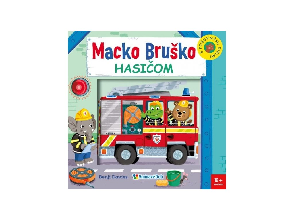 Veršované leporelo s posuvnými a otáčacími časťami. Macko Bruško dnes pomáha na hasičskej stanici. Rýchlo do auta, v meste horí! Macko Bruško sa hneď oblečie, pripraví si hasičskú výstroj a už sa rúti s hasičský autom ulicami mesta. Macko a jeho kamaráti zvieratká sú však profesionáli a oheň rýchlo uhasia...Dodatočné parametre