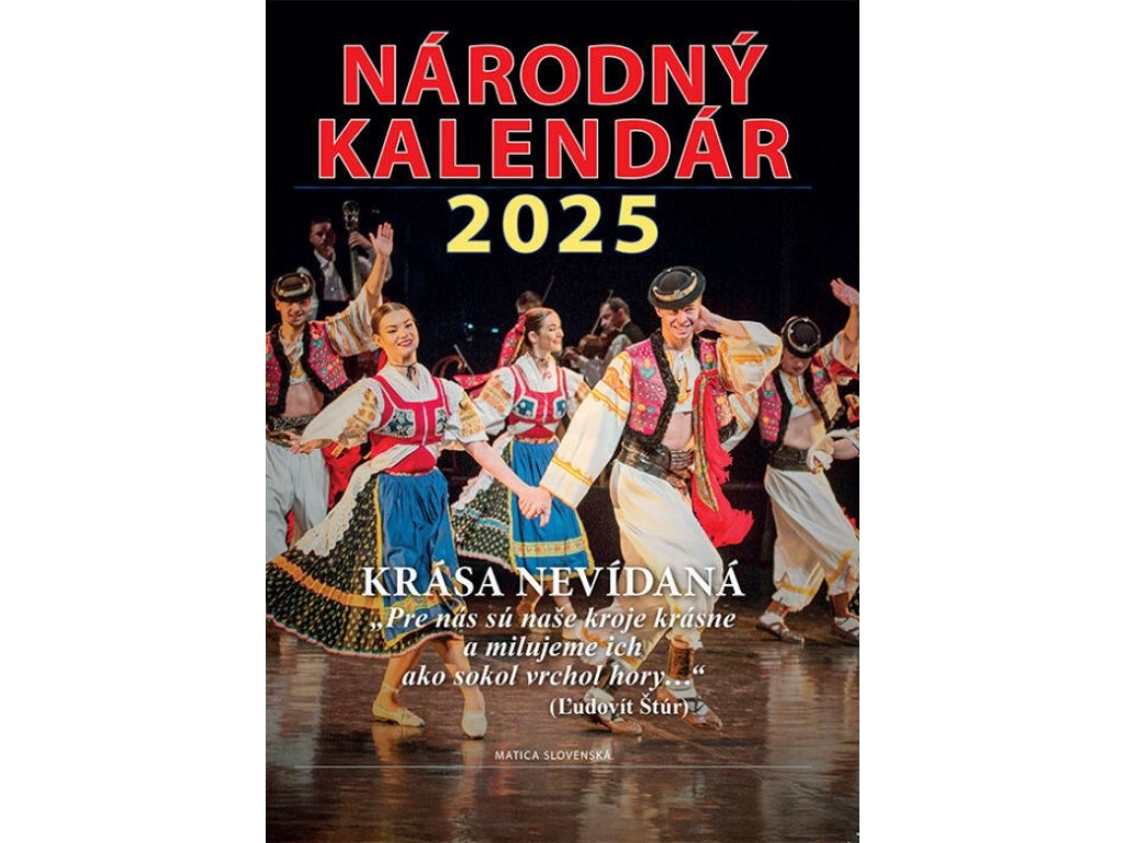 Samotná obálka vydania rodinného populárno-náučného Národného kalendára na rok 2025 čitateľom pripomenie veľké národné bohatstvo, krásu nevídanú, naše ľudové kroje, ktorých rozmanitosť, pestrosť a remeselnú zručnosť nám doslova závidí celý svet. Aj samotná Matica slovenská uchováva tento národný poklad vo svojej Šatnici. Nachádza sa v nej viac ako 1800 krojov zo všetkých slovenských regiónov, ktoré zapožičiava folklórnym súborom či jednotlivcom.V Národnom kalendári je okrem pripomienky tohto ojedinelého kultúrneho fenoménu Slovákov pestrá plejáda desiatok zaujímavých článkov o mnohých známych, ale najmä menej známych udalostiach a osobnostiach slovenskej histórie. V nich si napríklad pripomenieme bezohľadné zatvorenie Matice slovenskej uhorskými úradmi pred 150 rokmi, ale aj okrúhle 170. výročie vzniku Slovenských národných novín, príbehy ľudí odvlečených do gulagov, resp. súdených v tzv. politických procesoch po roku 1948, o balíku smrti pre diplomata Matúša Černáka, o spustnutom prešovskom Solivare, ale aj množstvo ďalších zaujímavostí zo života dvojčiat Michala a Pavla Mudroňovcov, slovenského Lincolna Štefana Furdeka, insitnej maliarky Zuzany Chalupovej, právnika Vladimíra Fajnora, generála Jána Goliana, poetky Maši Haľamovej, spisovateľa Fraňa Kráľa, matičiara Štefana Krčméryho, politika Jozefa Lettricha, herca Jozefa Adamoviča a mnohých ďalších.
