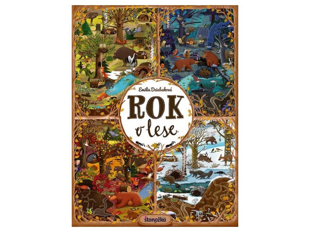 Rok v lese predstaví malému čitateľovi les s jeho obyvateľmi v každom mesiaci v roku – rovnaký záber môže sledovať v rôznych situáciách, za rozličného počasia, cez deň alebo v noci. Na začiatku knihy sa predstavia všetci lesní hrdinovia, v závere čaká čitateľov interaktívna hra.Spoznajte zvyky našich najznámejších lesných zvierat. Kto kde býva? Kto spí cez deň a kto v noci? Kto má koho rád a kto čo rád jedáva? Ako sa zvieratká pripravujú na zimu? Ktoré zvieratá a vtáky žijú spolu celý život a ktoré iba v čase párenia? Kto má najlepšie zásoby a kto je najväčším lesným nezbedníkom? Koho v zime v lese určite nestretnete? Odpovede nájdete na stránkach tejto nezvyčajnej knihy.