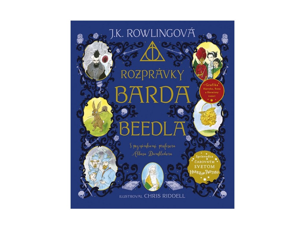 Vychutnajte príbehy barda Beedla, na ktorých vyrastajú malí čarodejníciRozprávky barda Beedla nie sú len príbeh o troch bratoch, vďaka ktorému Harry našiel kľúč k zničeniu horcruxov. Predstavujú päť očarujúcich rozprávok plných mágie, ľsti aj poučení. Rodičia v čarodejníckych rodinách ich s obľubou čítali svojim ratolestiam pred spaním celé storočia. Z originálu, ktorý bol napísaný v runách, ich preložila Hermiona Grangerová a trefné sprievodné poznámky k nim doplnil rokfortský riaditeľ, profesor Albus Dumbledore.