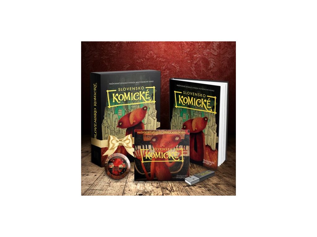 Pokračovanie úspešného multižánrového projektu Slovensko Noir prekročilo slovenské hranice. V druhom zborníku poviedok a audiopoviedok od Prešporského divadla sa môžete tešiť na prvotriednych umelcov z domácej, ale aj českej scény. Darčekový set Slovensko Komické obsahuje audioknihu na USB nosiči, tlačenú plnofarebnú knihu a zberateľskú magnetku. To všetko zabalené v darčekovej krabici. Slovensko Komické je druhou knihou poviedok od najlepších slovenských a českých autorov, ktoré odštartoval zborník Slovensko Noir a ktoré doposiaľ neboli publikované. Prichádza v časoch, ktoré môžeme zvládnuť práve vďaka humoru a smiechu. V tomto multižánrovom projekte však nájdete aj tragikomédiu, trpkosť, čierny humor, smiech cez slzy a príbehy o časoch minulých, súčasných, o vzťahoch, snoch, túžbach či očakávaniach. Dovoľte nám zabaviť vás.Dodatočné parametre