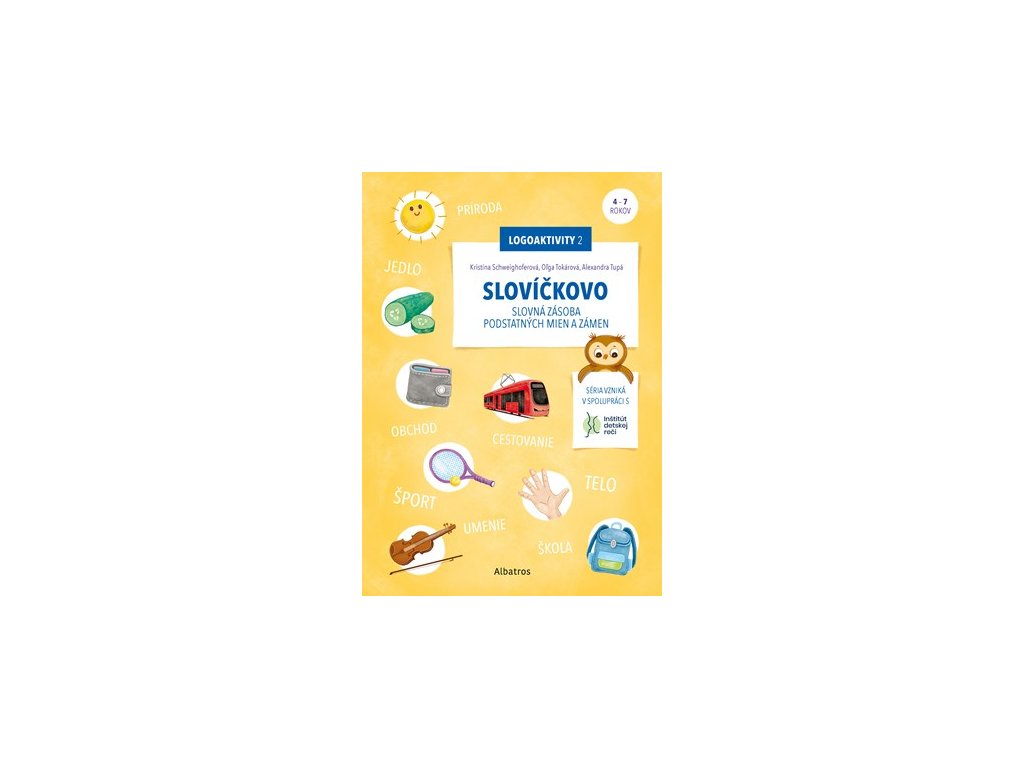 Vitajte v Slovíčkove! Slovná zásoba je nosným pilierom jazyka a reči. Tento pracovný zošit pomáha deťom rozvíjať slovnú zásobu podstatných mien a zámen. Obsahuje 8 tematických okruhov, v rámci ktorých dieťa plní rôzne zábavné úlohy. Jednotlivé okruhy sú sprevádzané indíciami, ktoré na záver dieťa spojí do šifry, a vylúštením šifry získa odmenu! Sériu Logoaktivity pripravujú logopedičky z Inštitútu detskej reči.Dodatočné parametre