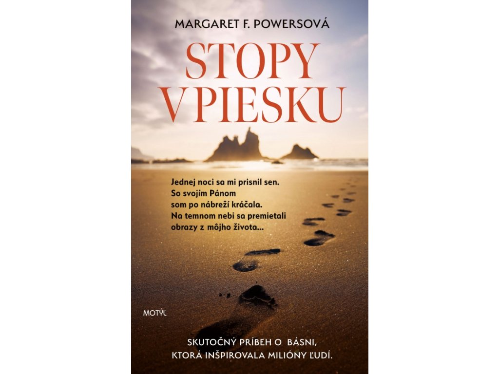 Báseň Stopy v piesku napísala mladá žena, ktorá hľadala správny smer na križovatke svojho života. Vytvorenie básne sa prepletá so životom plným výzvy, nepriazne, no i lásky a porozumenia. Výsledkom je nezabudnuteľné obetovanie srdca a duše, ktoré poskytuje vrúcnu duchovnú a emocionálnu obnovu.
