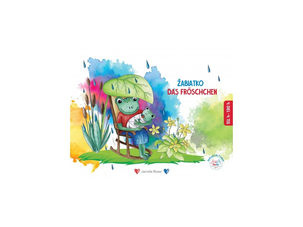Žabiatko (SK-DE) od Ľudmily Podjavorinskej patrí bezpochyby k pokladom slovenskej detskej literatúry. Kto z nás by ho nepoznal? Láskyplný príbeh stvárňuje narodenie rozkošného žabiatka, ktoré podľahne plánom o budúcnosti svojich príbuzných a maminej láske a utečie. Vodnú tematiku vhodne dopĺňajú básničky o zvieratkách žijúcich pri rybníku. V druhej časti sa nachádza tematický obrázkový slovník s použitou slovnou zásobou (rodina, mužské a ženské povolania, osobné zámená, dni v týždni, počasie atď.). Po ňom nasleduje maľované čítanie, kde si pomocou obrázkov vložených v texte cvičia deti svoje prvé čítanie. Dvojjazyčným spôsobom si deti môžu osvojiť i životný cyklus žabky. Pre bystré hlavičky sú pripravené závere knihy pracovné listy so zaujímavými úlohami. Krásne ručné detské ilustrácie s osobitým šarmom neopakovateľne stvárnila Dominika Budiačová a pod čarovný grafický dizajn sa podpísala Janka Rössl-Kiss. Tematicky pestrá dvojjazyčná publikácia je určená nielen na čítanie, ale predovšetkým na jazykové vzdelávanie detí od dvoch do sedem rokov.Dodatočné parametre